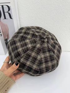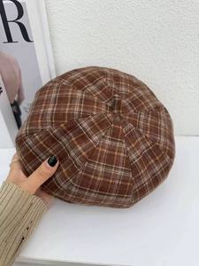 棕色前进帽女春秋季日系复古显脸小反戴贝雷帽大头围报童画家帽子