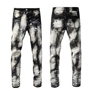 跨境欧美Purple Brand水洗做旧复古jeans破洞痞帅美式直筒牛仔裤