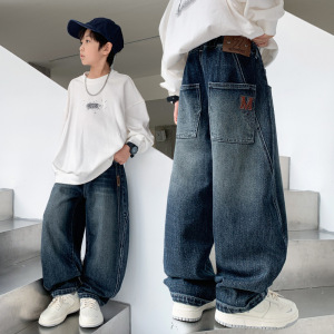 男童裤子春秋炸街儿童秋装牛仔裤2025新款中大童男孩秋季休闲长裤