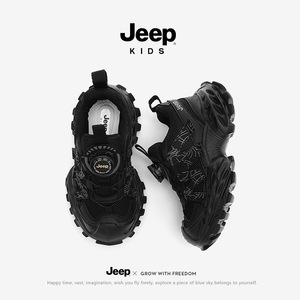 Jeep男童鞋子黑色秋季2025新款儿童运动鞋休闲童鞋女童潮酷老爹鞋