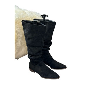 Ali guifei 粗跟绒面过膝靴堆堆长靴女鞋2025秋冬季卡其色瘦瘦长