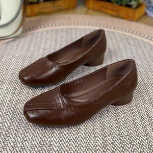 2025年春季粗跟百搭女单鞋法式复古妈妈鞋舒适浅口方头软底小皮鞋