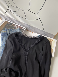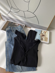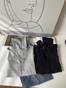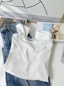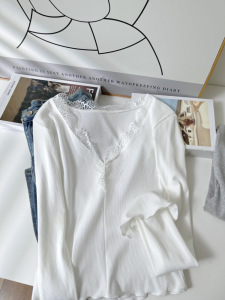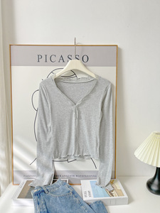 韩系纯色V领木耳边针织开衫女新款修身显瘦百搭薄款打底衫6121