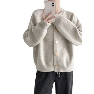 设计感单排扣纯色针织毛衣外套开衫慵懒宽松圆领秋冬百搭上衣