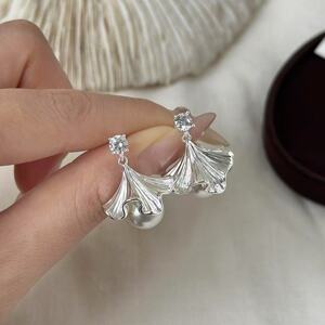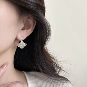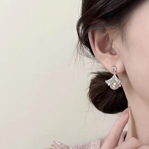 小众扇形银杏叶流苏珍珠耳环女夏天耳坠2025新款爆款轻奢高级感