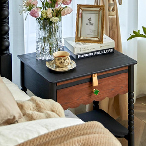 家用法式复古风床头柜实木床头侧边柜主卧室小型储物收纳柜子