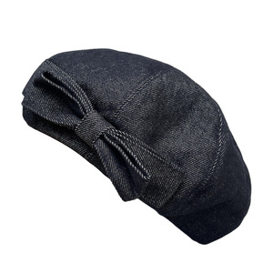 牛仔深蓝 双层蝴蝶结贝雷