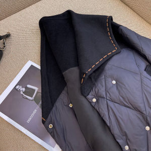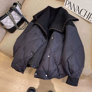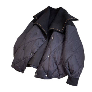 大码女装2025冬季新款胖mm设计感大翻领黑色菱格宽松遮肉棉服外套
