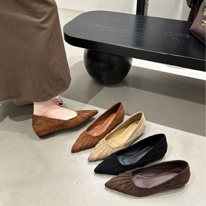 2025年新款秋季尖头单鞋平底内增高褶皱百搭浅口女鞋子瓢鞋