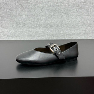 新款西班牙小众女鞋秋真皮皮带卡扣装饰芭蕾平底单鞋豹纹玛丽珍鞋