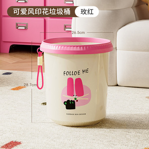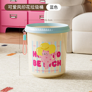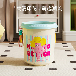 多巴胺卡通垃圾桶家用可爱压圈收纳桶废纸篓卫生桶高颜值客厅萌趣