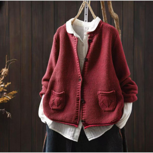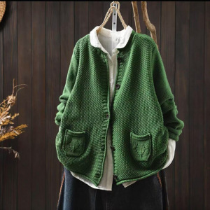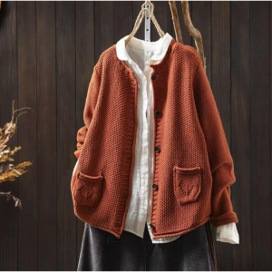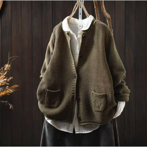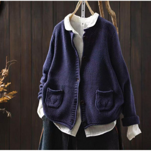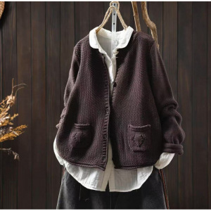 2025秋季新款 复古纯色休闲棉线双口袋文艺宽松上衣 女