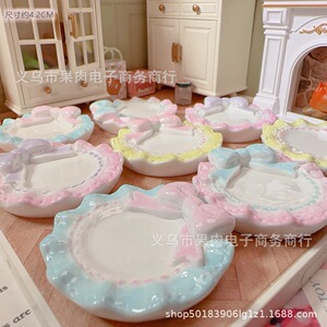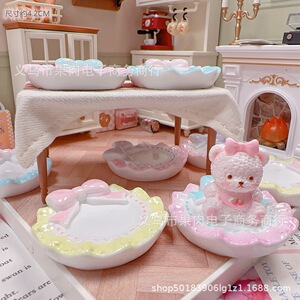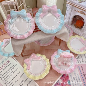 【独】立体蝴蝶结波浪盘子diy仿真微缩餐盘食玩树脂配件捏捏盘子