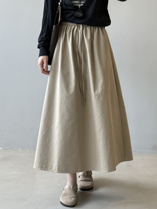 言双 韩版高腰工装半身裙女 秋季新款气质简约a字显瘦中长裙26293