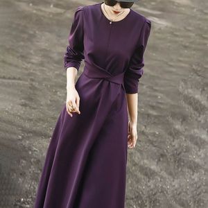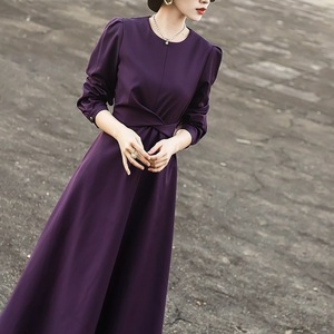 2025秋冬新款气质收腰显瘦轻奢大摆礼服裙长袖紫色连衣裙女