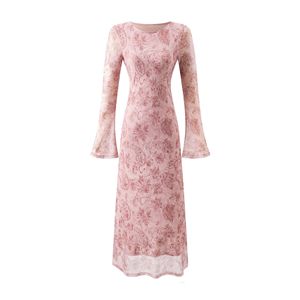L2608225夏季新款欧美风圆领微喇长袖收腰显身材印花长裙连衣裙
