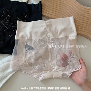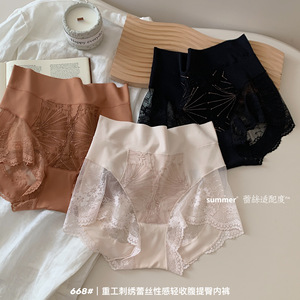 刺绣贵妇提拉高腰收腹弹力贴合轻薄提臀桑蚕丝裆部高品女生三角裤