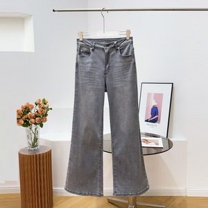 DS25新款经典复古显瘦显高直筒裤时尚简约百搭水洗做旧牛仔喇叭裤