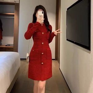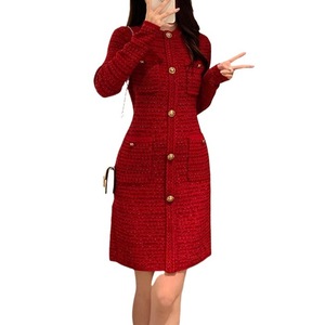 小香风惊艳红色女款连衣裙秋冬订婚礼服新娘回门敬酒装本命年