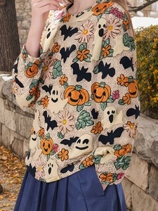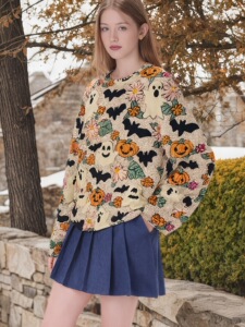 欧美跨境女装女士T恤圆领套头衫万圣节主题3D数码印花万圣节图案