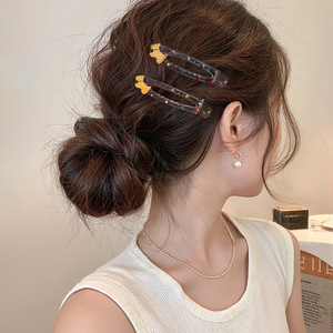 彩色水钻小狗发夹女2025新款高级感侧边碎发刘海夹前额鸭嘴夹发饰