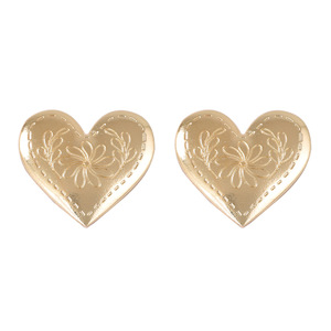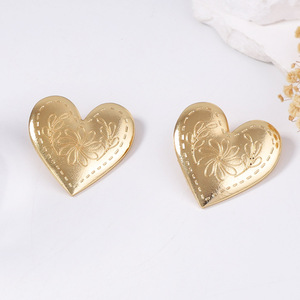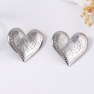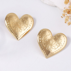ZA跨境个性复古冷淡风独特花纹夸张合金爱心心形耳钉百搭日常女