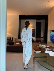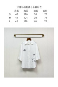 2025秋季新款简约涂鸦刺绣七分袖丝麻衬衣宽松上衣13