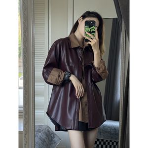 葡萄紫PU皮衣外套女2025年春秋季时尚新款复古夹克百搭衬衫