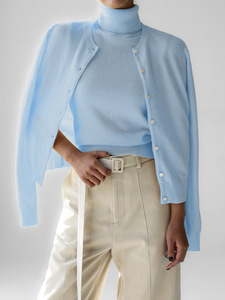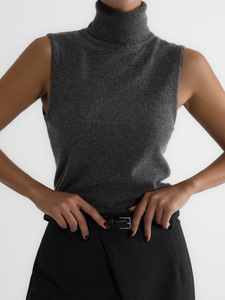 跨境针织衫毛衣套装欧美2025初秋高领无袖打底衫+毛衣开衫套装女