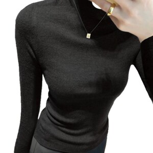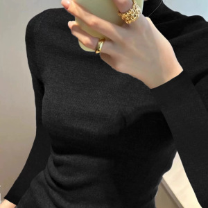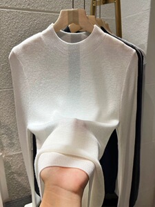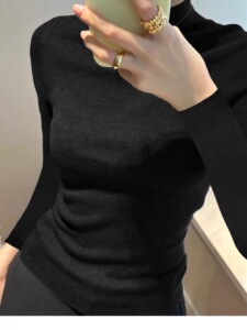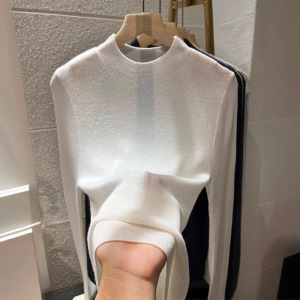 早秋精纺羊毛针织打底衫女式软糯内搭半高领修身显瘦纯色针织毛衣