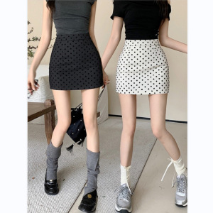甜辣妹杏色波点半身裙女装2025新款夏季休闲百搭包臀裙子A字短裙