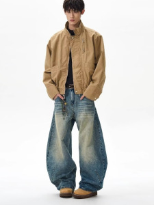 美式复古高街cleanfit立领飞行员夹克男潮牌boxy宽松百搭工装外套