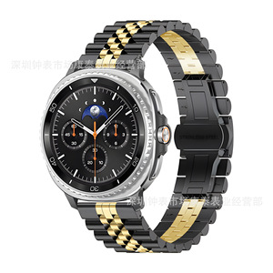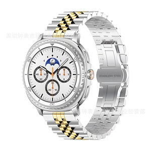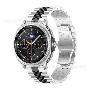 适用三星Watch8手表带8classic钢带五珠表带蝴蝶扣实心不锈钢表带