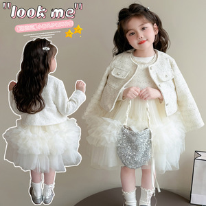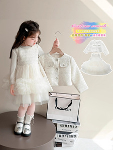女童小香风连衣裙秋装2025新款洋气儿童春秋款裙子套装公主裙秋季