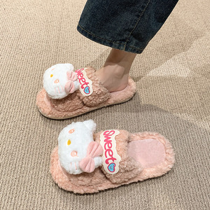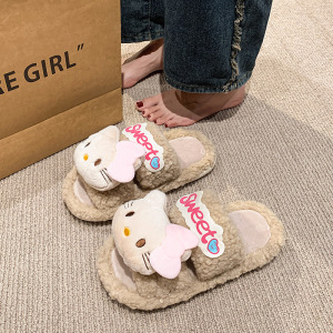 高颜值小众少女风可爱小猫咪毛毛拖秋季新款潮流百搭舒适棉拖鞋女