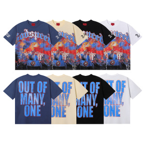 跨境25ss新款Godspeed洗水做旧短袖复古高街摇滚乐队T恤男女同款