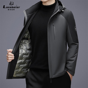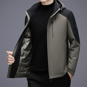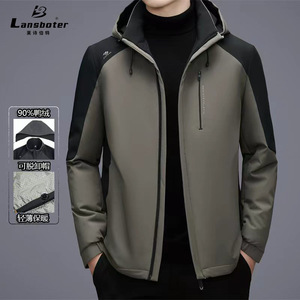牛奶丝面料新国标90白鸭绒羽绒服冬季中年短款脱卸帽保暖轻羽绒服