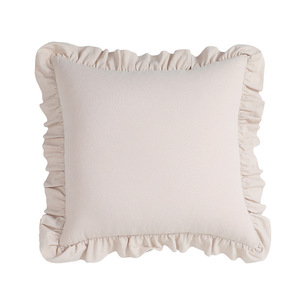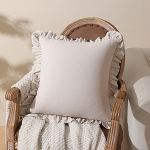 旭爱新款水洗棉棉质木耳边荷叶边花边抱枕套柔软舒适纯色抱枕套