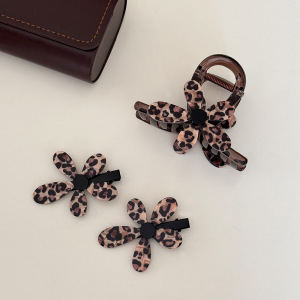 时髦醋酸豹纹花朵一字夹发卡高级感鸭嘴夹碎发刘海夹五瓣花侧边夹