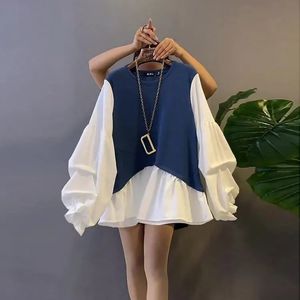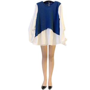 卫衣斤特胖妹妹不规则泡泡袖衬衫拼接假两件上衣大码女装潮妈300