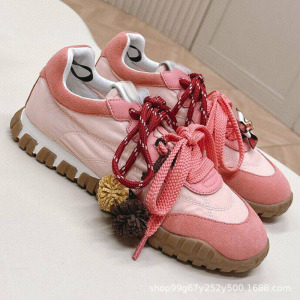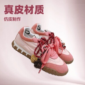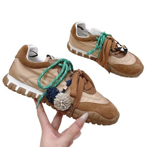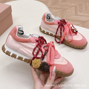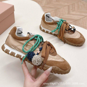 miu2025女鞋圆头新款平底饼干阿甘鞋平跟舒适透气系带休闲风