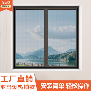 厂家直供纱窗网自装家用隐形魔术贴防蚊窗纱可拆卸免打孔纱窗