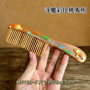 18cm浮雕彩绘老桃木梳【锦鲤】
