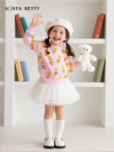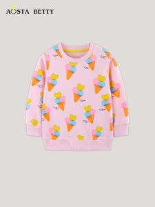 跨境货源欧美风女童卫衣可爱印花儿童运动衫针织棉圆领套头打底衫