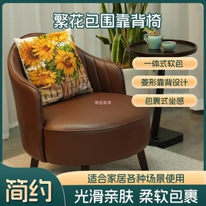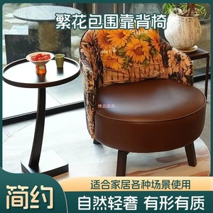 新款繁花包围靠背椅单人旋转沙发椅松弛客厅阳台家用复古轻奢皮椅