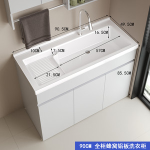 Kxh蜂窝铝阳台柜一体式洗衣柜陶瓷一体盆带搓衣板浴室柜洗手池洗