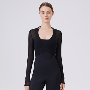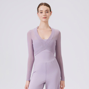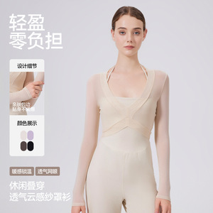 裸感网纱运动速干长袖女修身透气坎肩跑步健身上衣瑜伽服短款罩衫