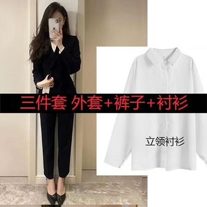 灰色西装套装女2025年春秋新款上衣工作服正装黑色西服外套两件套