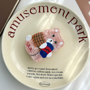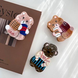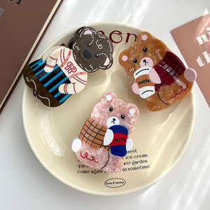新款可爱卡通醋酸发夹甜美咖啡熊猫抓夹后脑勺高级感气质鲨鱼夹子