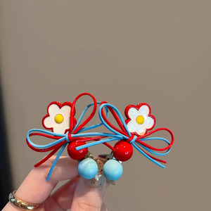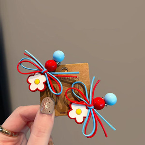 韩国东大门甜美红蓝撞色花朵蝴蝶结发夹刘海夹女生扎发碎发夹发饰